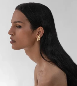 . SMALL EAR EST UNE BOUCLE D'OREILLE À CLIP, DORÉ OR, SE PORTE À L'OREILLE GAUCHE.